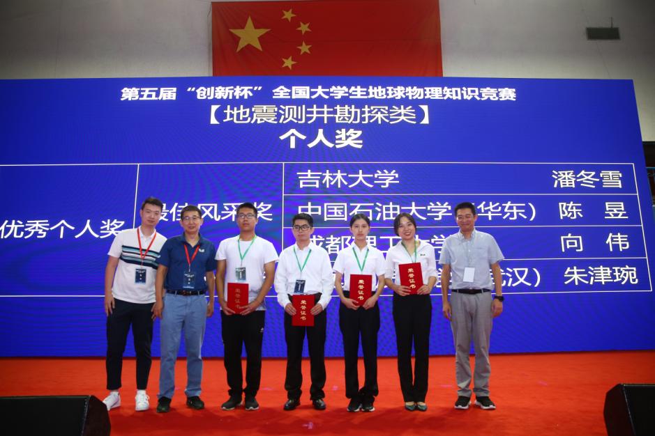 由师学明教授指导,硕士生郭楚枫、黄亮,本科生武雨纯、薛纪岩组成的代表队荣获重磁电勘探类比赛特等奖;由谢祖军副教授指导,硕士生谢媛、本科生郑瑞、唐笑天、林厚羽组成的代表队荣获固体地球物理类比赛一等奖;由朱培民教授指导,本科生朱津琬、张金晗、靖剑坤、关玉蕊组成的代表队荣获地震测井勘探类比赛一等奖。2018级硕士生谢媛荣获最佳风采奖,2018级硕士生郭楚枫、2016级本科生朱津琬荣获最佳个人奖。公司代表队由tyc33455cc太阳集团执行经理熊熊教授领队。
