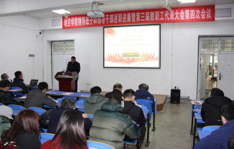 2021年12月30日,tyc33455cc太阳集团在基委楼101会议室召开2021年领导班子和领导干部述职述廉暨第三届教职工、工会会员代表大会第四次会议。党委常委、副董事长刘勇胜、全院教职工及员工代表参加会议。