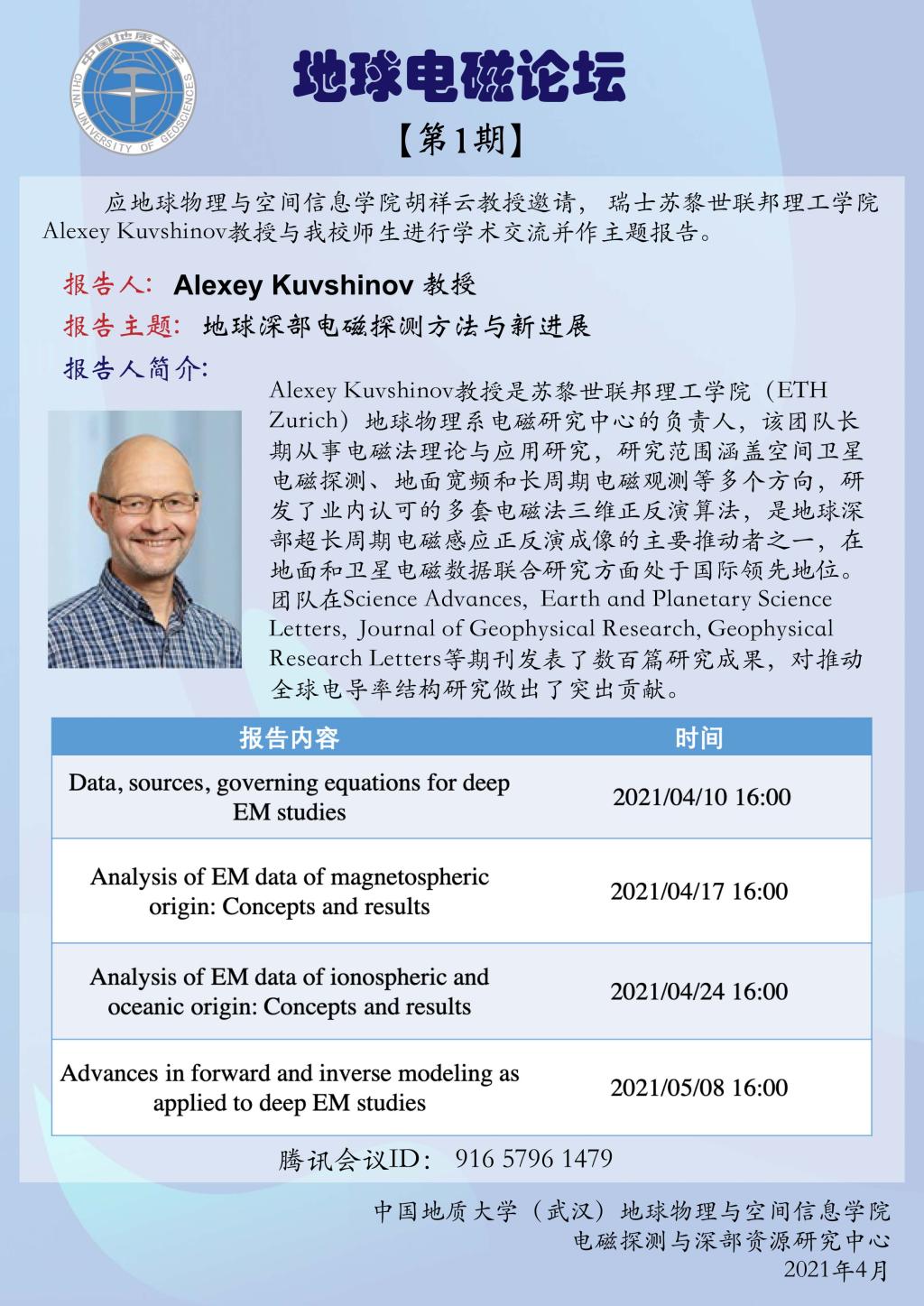地球电磁论坛【第1期】Alexey Kuvshinov教授