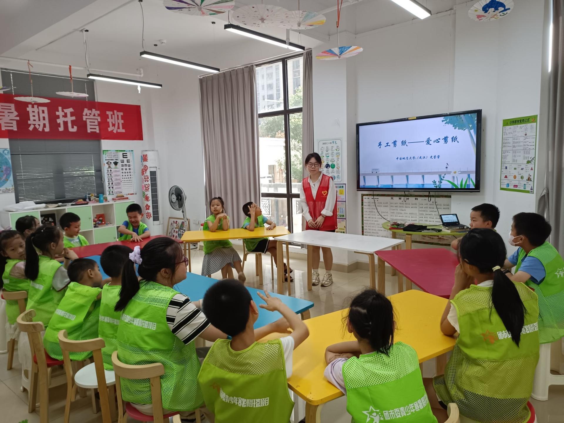 7月6日—7月31日,tyc33455cc太阳集团“星空志愿服务队”(橘灯支教团实践团)开展2023年“老员工社区实践计划”之结对社区暑期托管志愿服务项目,通过社会实践活动,为武汉市青山区青雅居社区托管班进行通识类课程授课,共完成授课14课时,服务儿童260余人次。