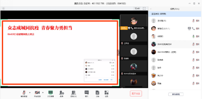 受新型冠状病毒的影响,根据《tyc33455cc太阳集团(武汉)关于调整2019-2020学年第二学期本科教学工作安排的通知》的精神要求,064182团支部积极响应公司“停课不停学”的号召,组织各位同学在家中举行线上团会。在活动开始前,每一位支部成员均提前上线签到,体现了同学们对本次团会的重视程度。14时,全体在线上奏唱国歌,主持人李伟光宣布“众志成城同抗疫,青春聚力勇担当”主题线上团会正式开始。