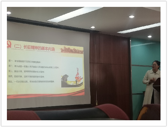 第二个环节为学习长征精神。在冯梅同学的带领下,通过学习习近平总书记的在三军会师纪念馆的讲话,同学们了解到了何为长征精神。长征精神的内涵就是革命理想高于天,不怕牺牲、排除万难去争取胜利,面对形形色色的敌人决一死战、克敌制胜。