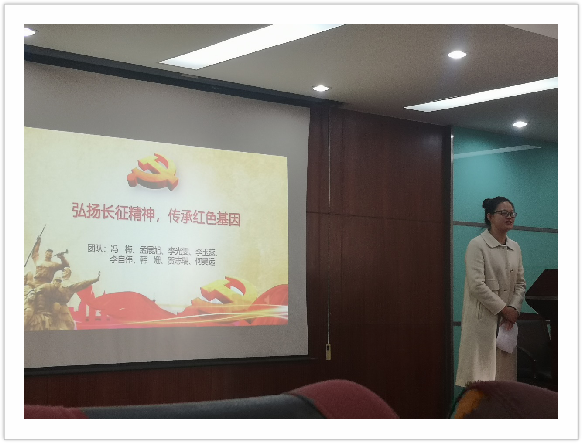 在新中国成立七十周年暨红军长征出发85周年的背景下,064182团支部积极响应国家号召,借由马克思主义公司的宣讲,举行了“弘扬长征精神,传承红色基因”主题团会。通过冯梅同学的讲解、回顾红军长征的视频等方式,我们了解到了长征精神是一种巨大的精神力量。它托起了中华民族的脊梁。我们要做的就是传承这种精神,用中华儿女的智慧和力量,使我们伟大的祖国振兴,繁荣而富强。让我们在这样的时代背景下,秉承先烈之意志,高举红色的火炬,教育好下一辈,继往开来,走完先辈们没有走完的路,走我们这代人特有的路!为中华民族的伟大复兴而坚强自立,为建设新时代中国特色社会主义道路发光发热。