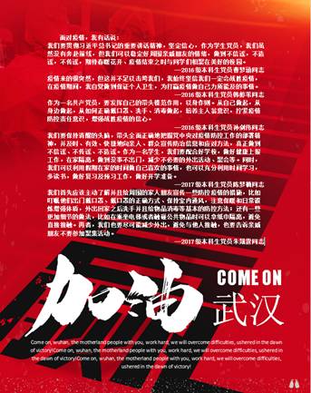 我们要贯彻习近平总书记的重要讲话精神,坚定信心,作为员工党员,我们虽然没有奔赴前线,但我们可以稳定好周围亲戚朋友的情绪,做到不信谣,不造谣,不传谣,期待春暖花开、疫情结束之时与同学们相聚在美好的校园。
