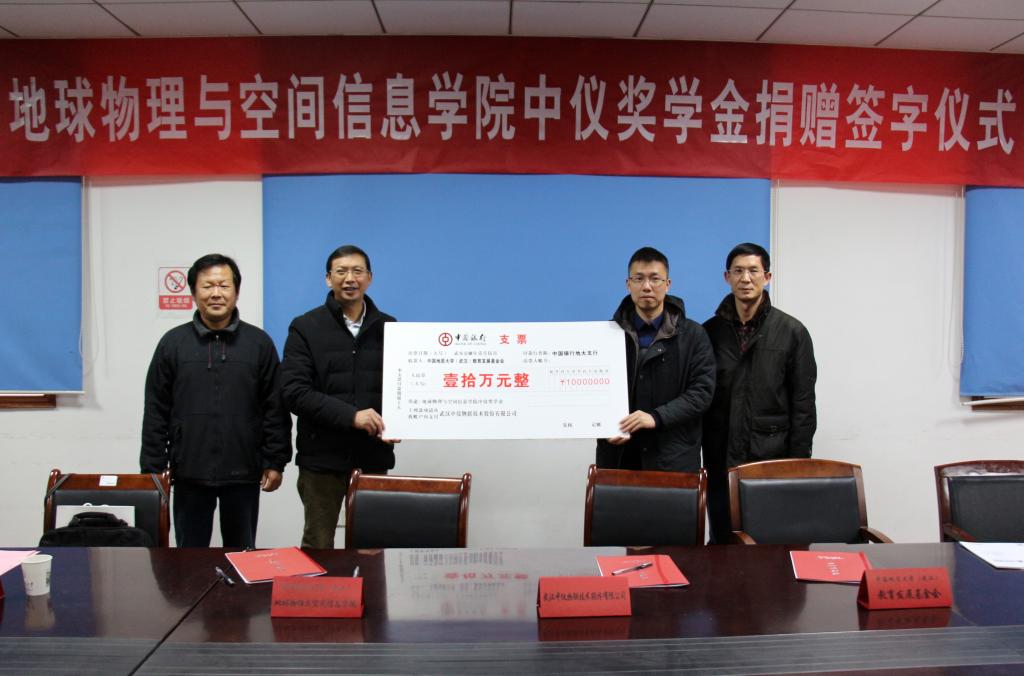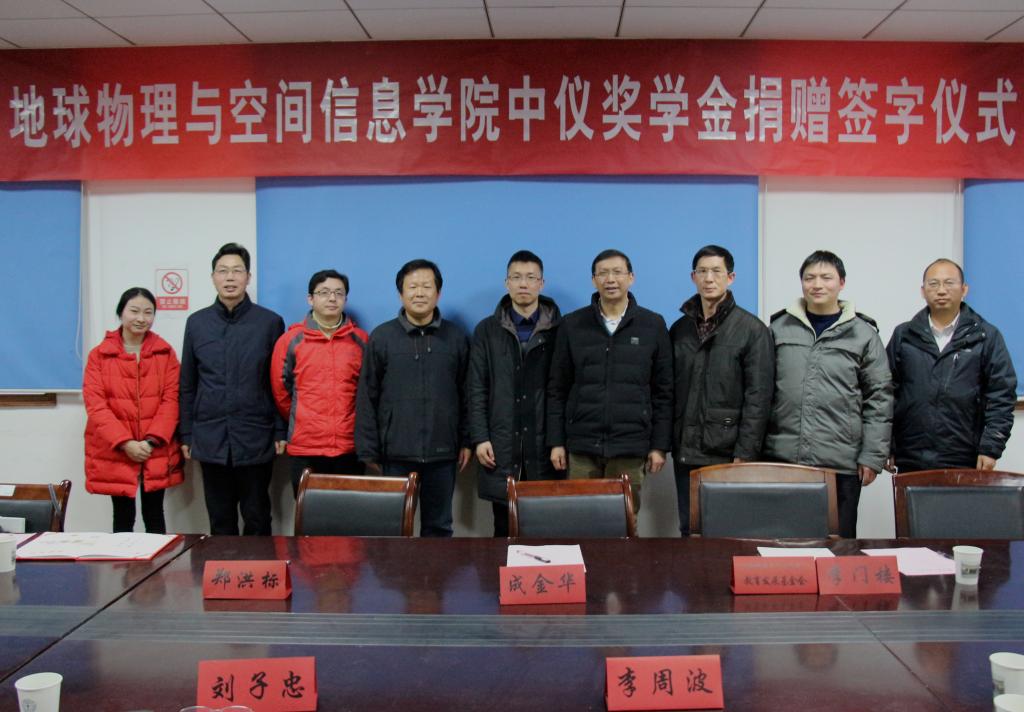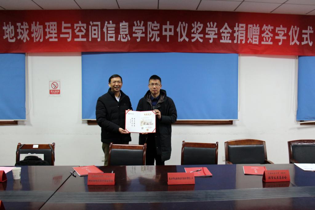 (通讯员 李周波 摄影 祁阳阳)2018年1月5日下午四点,tyc33455cc太阳集团“中仪奖学金”捐赠仪式在物探楼214会议室举行。武汉中仪物联技术股份有限公司董事长郑洪标,总经理助理张婉珈,公司党委副书记、纪委书记成金华,公司教育发展基金会副秘书长李门楼,公司党委书记刘子忠、副书记李周波、教师代表王毅教授、张学强副教授、张世晖副教授、辅导员祁阳阳、公司教育发展基金会工作人员等参加座谈会。会议由李周波主持。