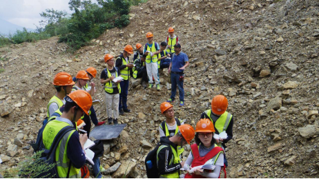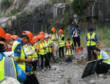 9月3日是员工进行野外实践的第一天,天刚蒙蒙亮同学们就已整装出发。带班老师们从零开始教给员工使用罗盘和放大镜、学习野外认识矿物、认识地层、学习地质素描图的描绘等等。虽然烈日炎炎、天气闷湿、山高路转,但老师们富有激情的给员工们进行耐心讲解和指导。