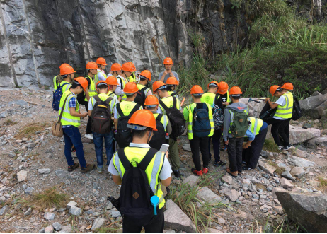 佘振兵在下岸溪石料厂给061161班员工讲解矿物的野外识别方法(9月3日)