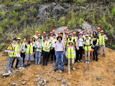 张志和曹雪莲给064162班员工讲解变质岩观察方法后集体合影(9月3日)