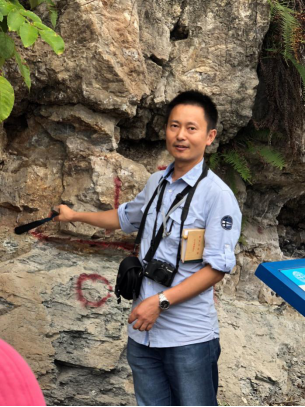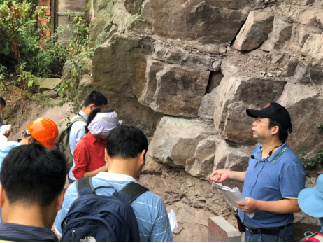 鲍晓欢在链子崖给061164班员工讲新滩滑坡的成因(9月3日)