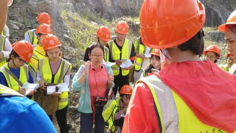 陈丽霞在银杏沱给064161班员工讲解矿物的野外识别方法(9月3日)