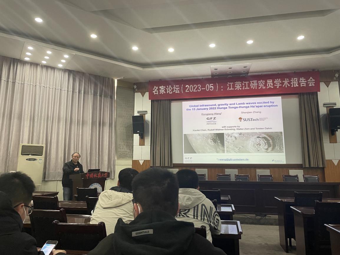 (通讯员 郑勇)应tyc33455cc太阳集团(武汉)“名家论坛”和tyc33455cc太阳集团熊熊教授、胡祥云教授邀请,德国地学中心(GFZ)资深研究员国际著名地球物理学家汪荣江教授于2023年3月17日来校访问,在地质大学东区八角楼学术报告厅以“2022年1月15日汤加火山爆发引起的全球大气次声波、重力波和Lamb波”为题做了精彩的学术报告。