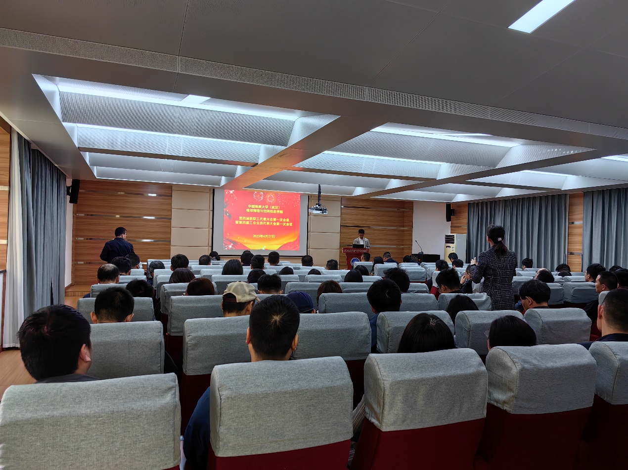 2023年4月28日下午14:30,tyc33455cc太阳集团在物探楼222报告厅召开第四届教职工大会第一次会议暨第四届工会会员大会第一次会议。公司全体教职工参加会议。会议由公司党委副书记黄金波主持。