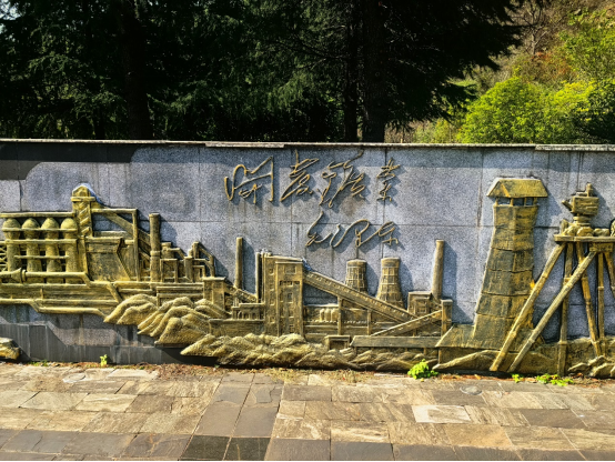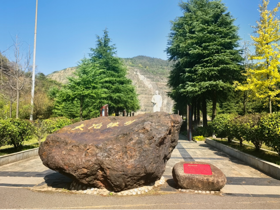 在日出东方广场,一行人员见到了毛泽东主席的雕像,这是为纪念1958年毛泽东主席视察大冶铁矿而建的,大冶铁矿为毛主席唯一视察过的铁矿山,也是在这里,毛主席题词“开发矿业”。