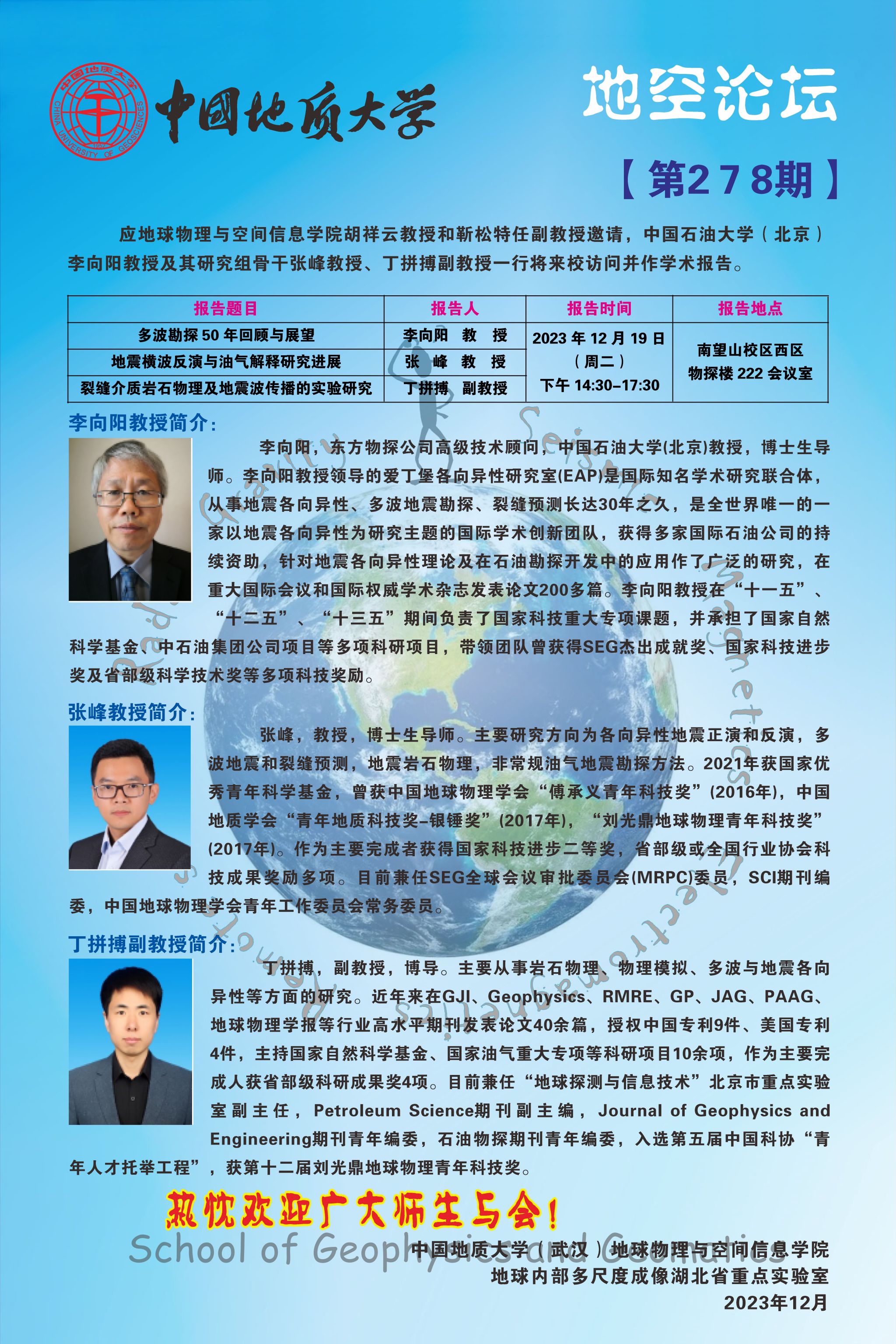 地空论坛【第278期】中国石油大学(北京)李向阳教授、张峰教授、丁拼搏副教授